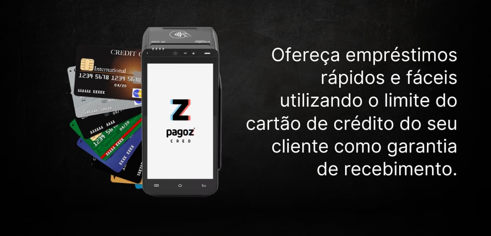 Com o Pagoz Cred, ofereça empréstimos diretamente na máquina de cartão ou Online, utilizando o limite disponível do cartão de crédito do cliente. Simples, rápido e sem burocracia, essa solução amplia suas ofertas financeiras e proporciona mais conveniência aos seus clientes.